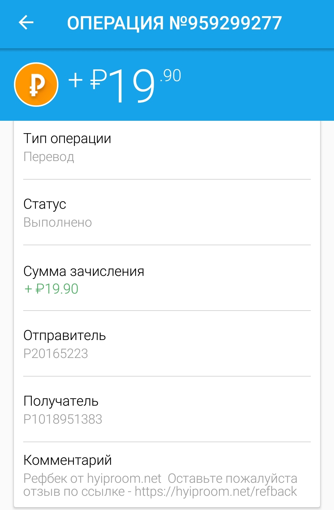 03.02.20 08:13 Account Receive +1.21 Received Payment 1.21 USD from account U9619611 to account U173****. Batch: 305485265. Memo: Страховка от hyiproom.net